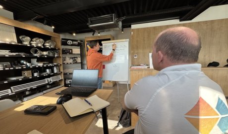 L'équipe en plein cours auprès du Maestro Romain sur les pompes à chaleur air/eau. Qu'est-ce qu'ils sont studieux..!!😁