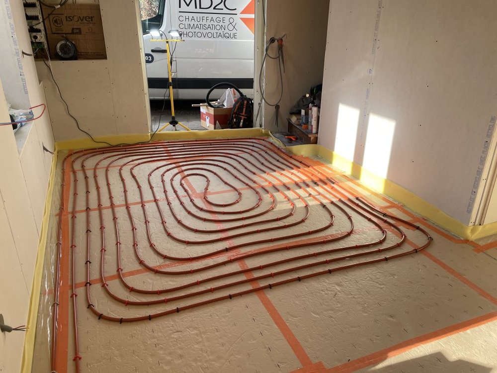 Première étape : l’installation d’un plancher chauffant, pour garantir un confort thermique homogène et agréable dans toute la maison.🏠🔥