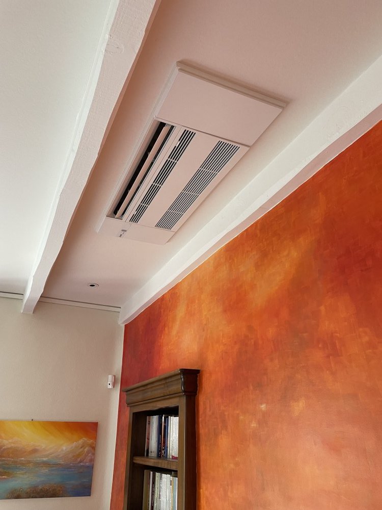 Nouvelle installation d'une PAC air/air MITSUBISHI avec cassettes et consoles chez un client par MD2C !