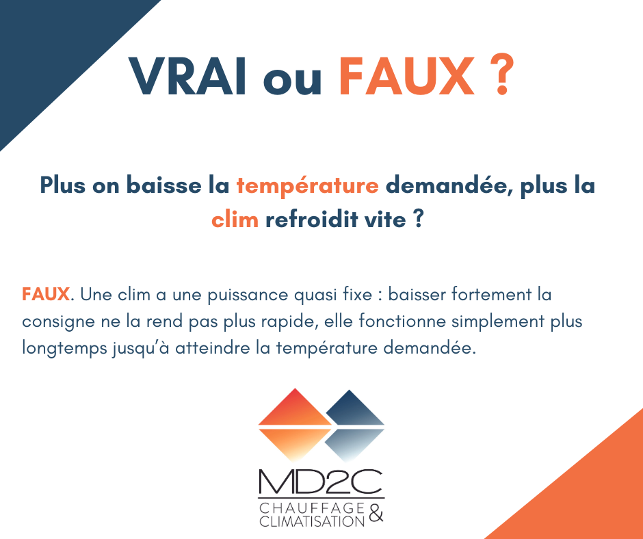 💡Si vous voulez refroidir efficacement, mieux vaut régler une température réaliste (≈ 24–26°C) plutôt que de mettre au minimum en espérant aller plus vite.😉