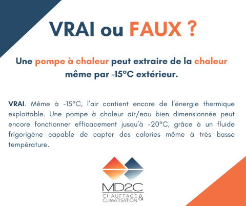 Même quand il fait très froid dehors, une pompe à chaleur continue de capter la chaleur présente dans l’air !